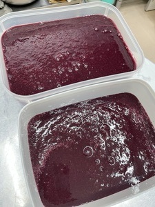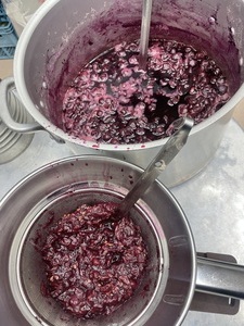 漉し終わったピューレ 他の葡萄に比べて濃厚な風味でピューレ自体がトロッとしています